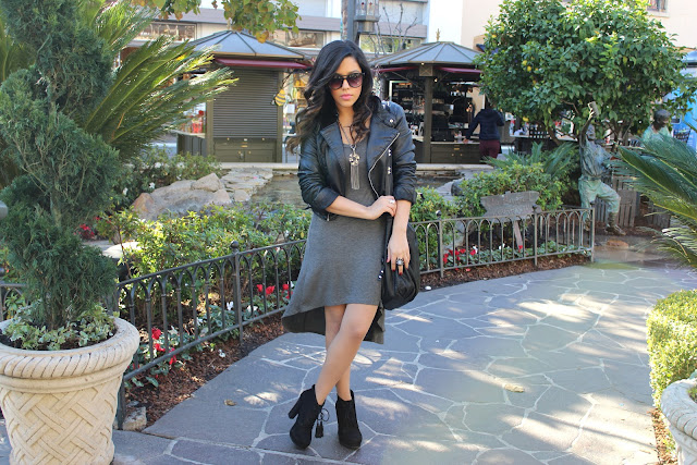 I feel like LA has such a laid back, edgy vibe and I really wanted to show that in my outfit. I've been looking for a casual high low dress like this one so I was really happy when I found it a few days before my trip. Everyone told me that LA has been so cold lately, but I knew it would be nothing compared to NJ/NY winter weather!